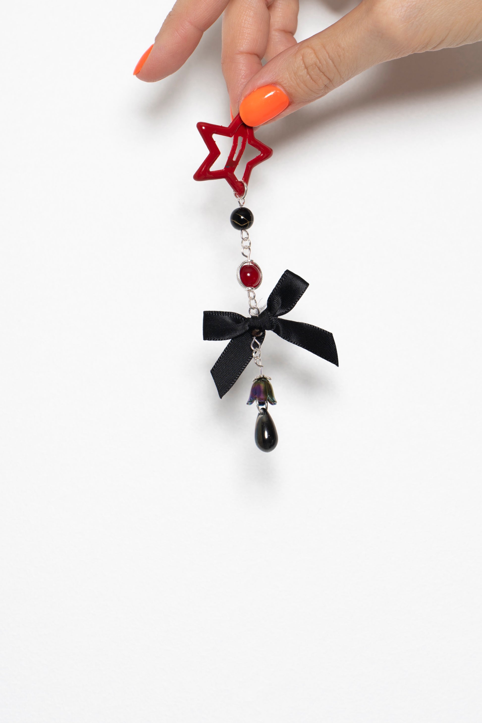 Fabriquée à la main, chaque barrette mêle perles, mini charms et une étoile effet plastique rétro pour un look à la fois cute & spooky 🎃⭐