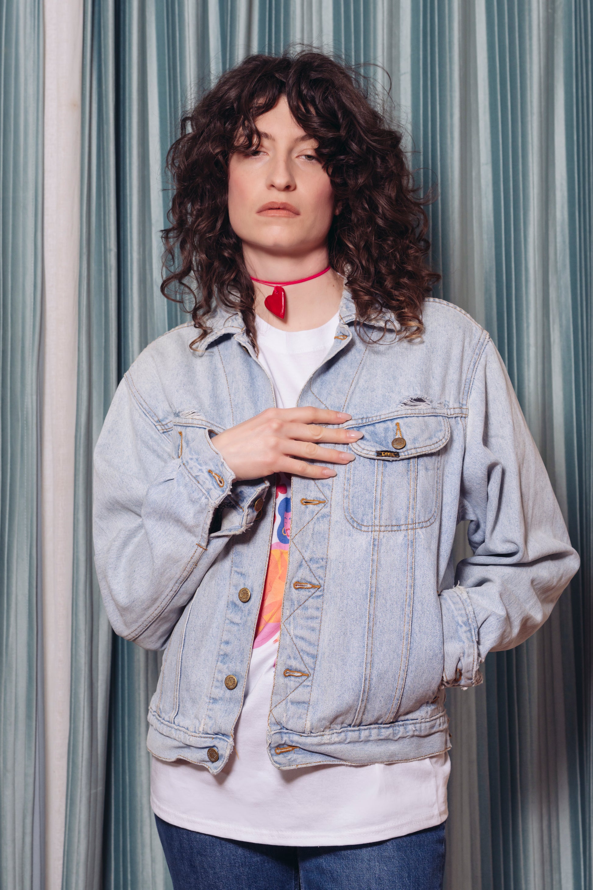Cette veste en jean bleu clair est une collab’ entre 2in et La Fête Sauvage.